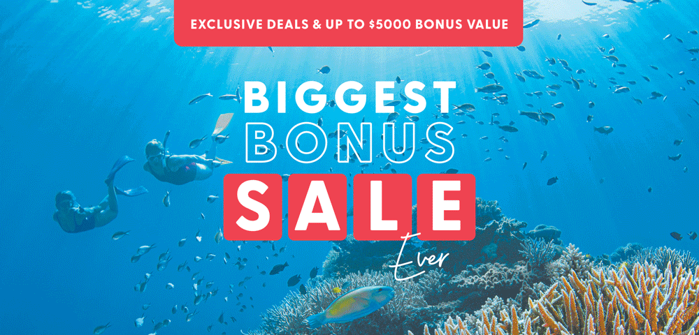Picture yourself diving into Fiji’s crystalline waters, lazing beachfront in Hawaii, exploring Bali’s verdant rice terraces, or living in the lap of Maldivian luxury. Wherever you dream of holidaying, our Biggest Bonus Sale is back and better than ever! Taking you to tropical paradises across the globe, discover massive savings on our most exclusive holidays, perfectly packaged with up to $5000 Bonus Value. All there’s left for you to do is pack!
